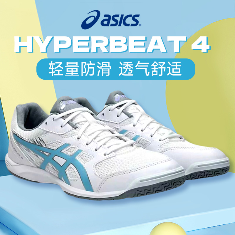 ASICS亚瑟士 乒乓球鞋 缓震透气比赛运动鞋 训练耐磨室内运动鞋 1073A056-102 ATTACK HYPERBEAT 4 白蓝色舒适透气,防滑鞋底