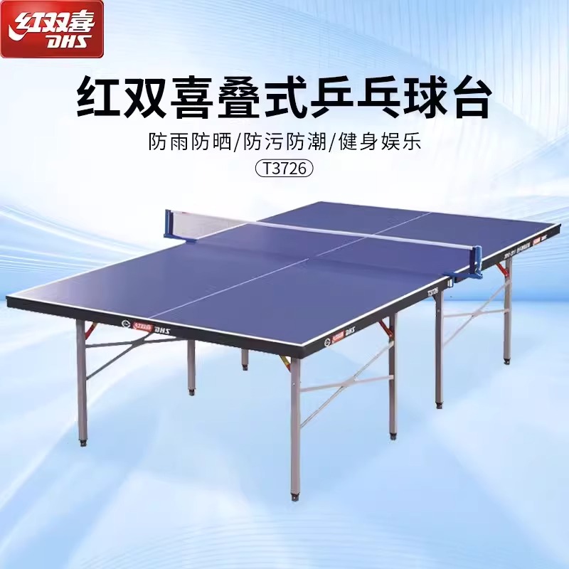 DHS红双喜 乒乓球台 折叠室内乒乓球桌 比赛训练乒乓球台 15MM面板普通型乒乓球桌 单折分体式T3726 含网架不免运费,运费请电话联系客服人员手动修改,物流送货到楼下!
