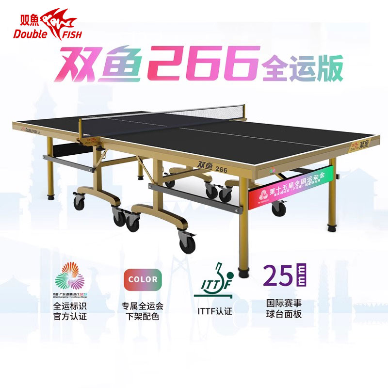 DOUBLE FISH双鱼 266乒乓球台全运版 第十五届全国运动会标准室内大赛乒乓球桌 黑色面板25mm高弹面板