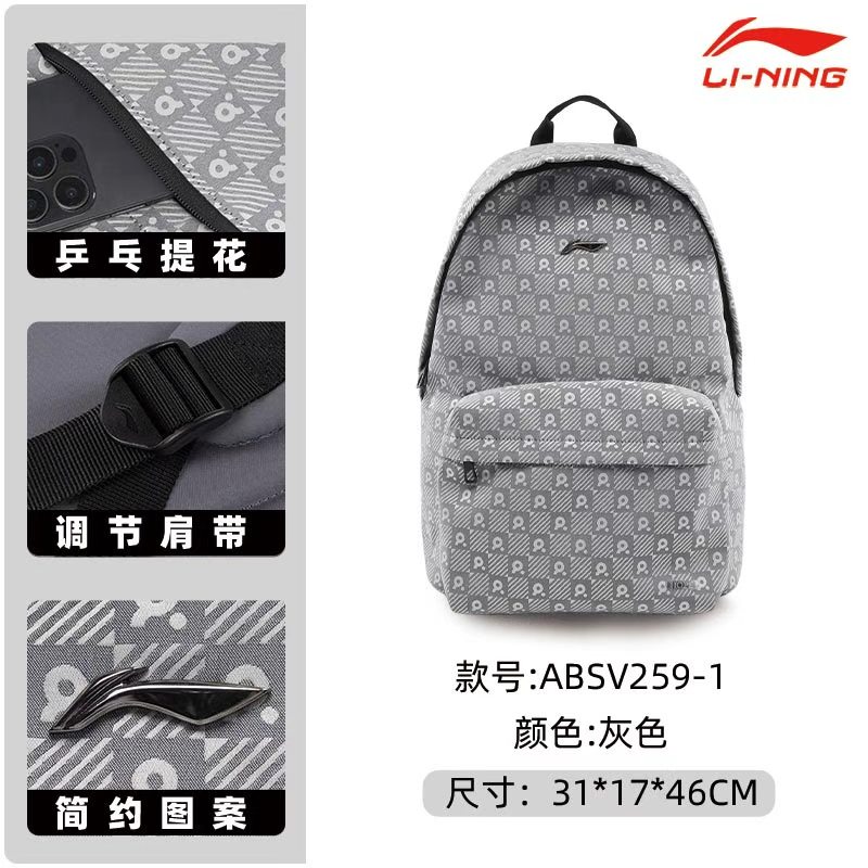 LINING李宁 乒乓球包 王楚钦同款背包 国家队同款 训练装备包 男女款运动双肩包 ABSV259-1 灰色大容量 乒乓提花 拉链贴袋