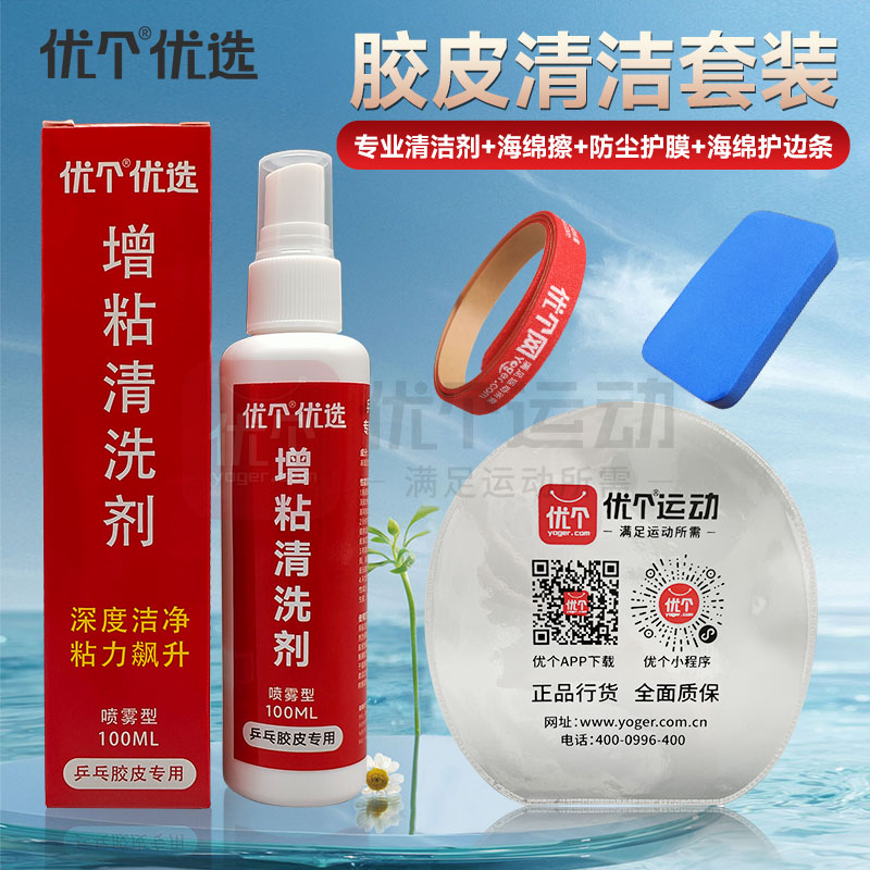 优个优选 胶皮清洁套装 增粘清洗剂100ML+单色擦洗棉+护膜*2张+海绵护边条 深度清洁,增粘护胶一步到位