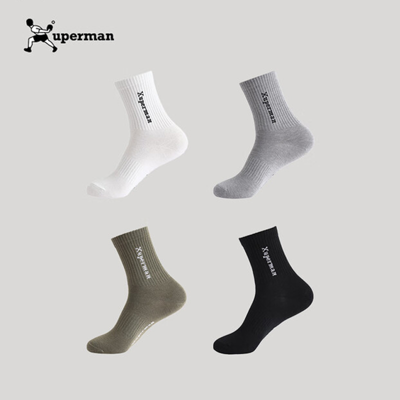 Xuperman 乒乓球袜 字母纯色吸汗中筒袜 休闲透气跑步运动袜 四色可选经典logo提花