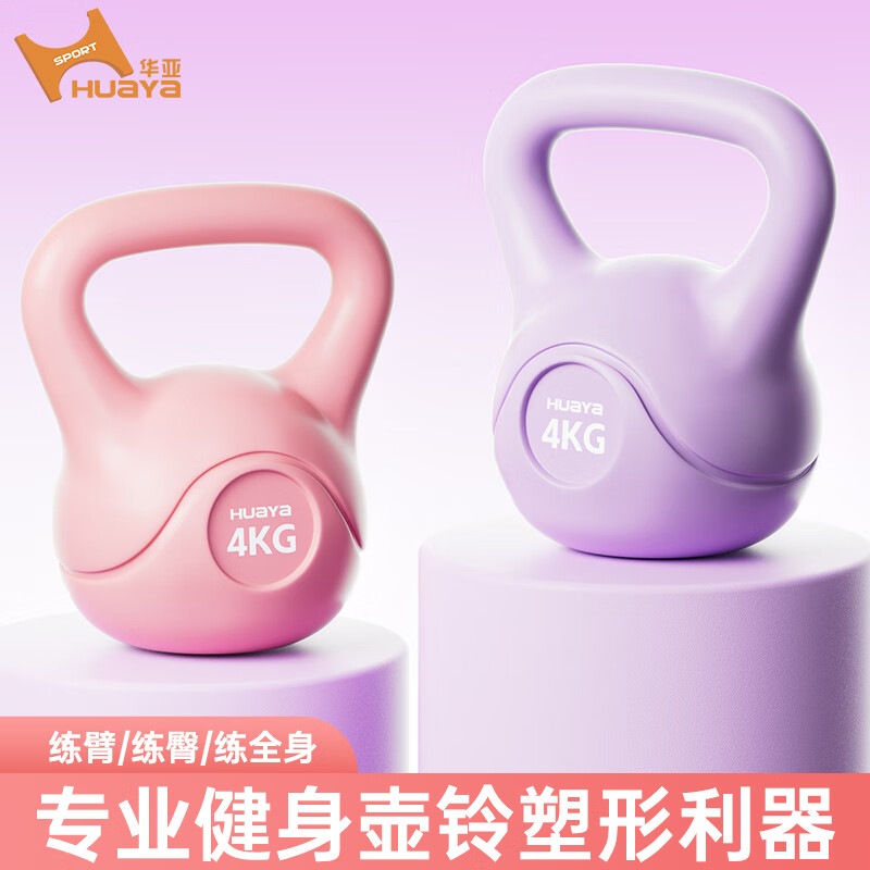 华亚 男女家用健身壶铃 包胶提壶哑铃 力量训练手臂深蹲器材 4kg 三色可选塑性利器 结实耐用