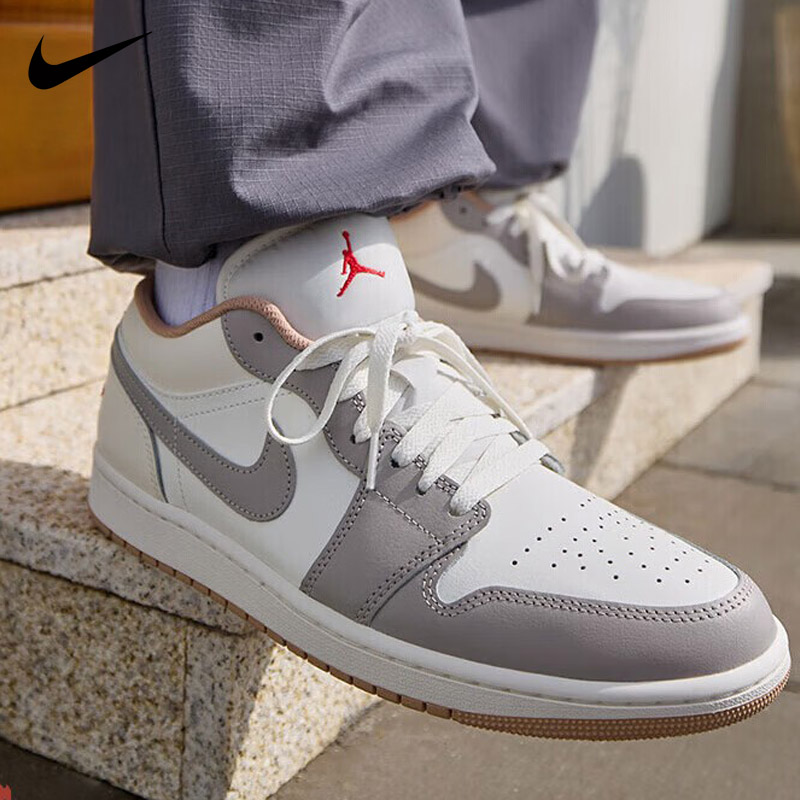 Nike耐克 男款篮球鞋 AIR JORDAN 1 LOW运动训练篮球鞋 553558-169 帆白/火焰红/学院灰/麻黄/淡象牙白防滑缓震 减震耐磨