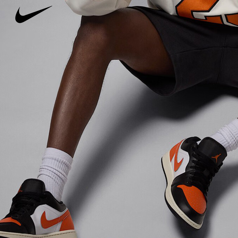 Nike耐克 男款篮球鞋 AIR JORDAN 1 LOW运动训练篮球鞋 553558-081 黑/海星橙/白/帆白防滑缓震 减震耐磨