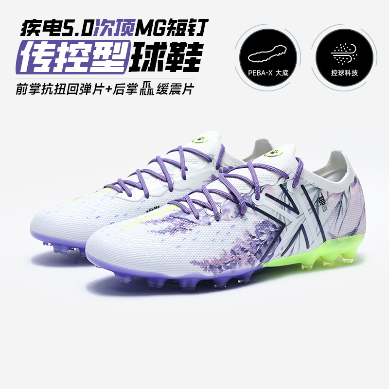 KELME卡尔美疾电5.0 低帮MG短钉足球鞋 男女新款成人专业训练鞋 9431ZX1237白紫耐磨防滑 稳定支撑