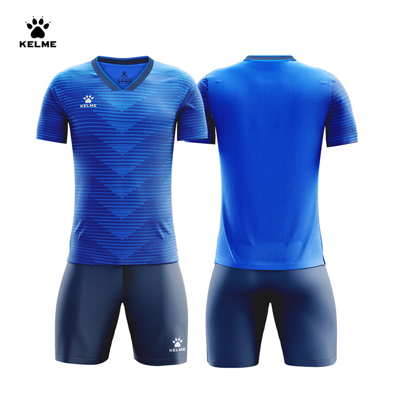 KELME卡尔美足球服 夏季可印制服套装 男比赛服训练服套装 8451ZB1247-481彩蓝可订制 可印字 透气不闷 速干排汗