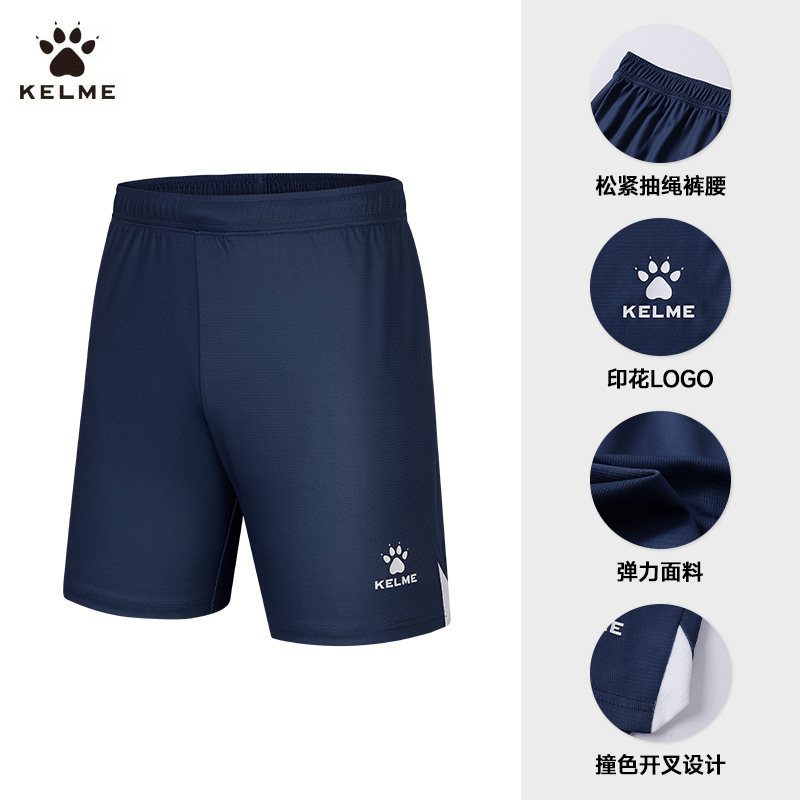 KELME卡尔美足球短裤 男运动跑步健身训练速干针织五分裤 8551ZB11088-416深蓝轻盈透气 速干排汗