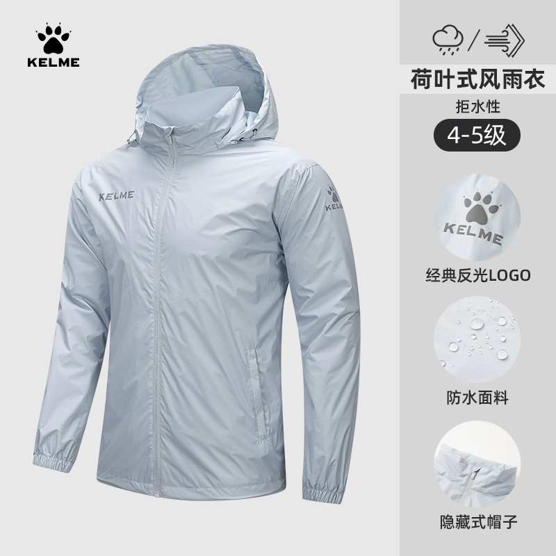 KELME卡尔美运动风衣 男春风雨足球防泼水跑步户外训练外套 9461WT1119灰色防风防水 耐磨耐刮