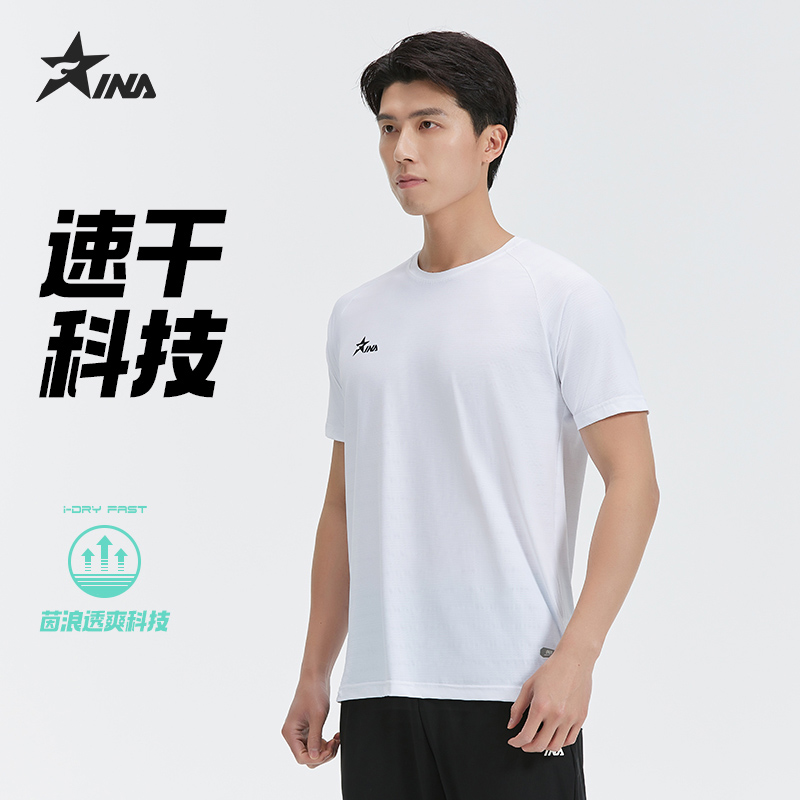 茵浪运动圆领短袖冰丝T恤 男款夏季透气速干衣跑步健身训练服上衣 IN-7531白色吸湿透气 速干排汗