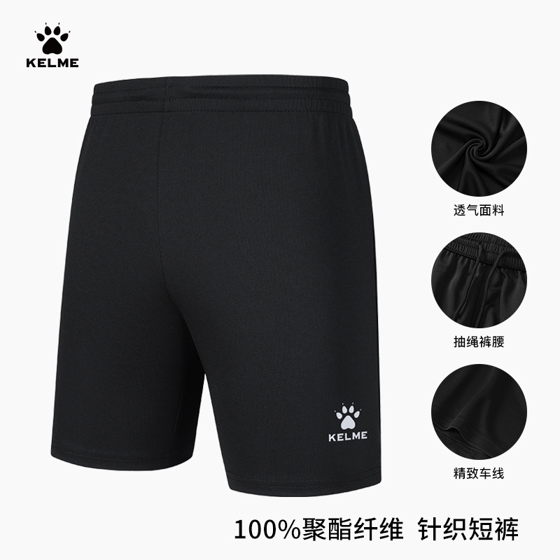KELME卡尔美定制足球运动短裤男透气成人跑步健身训练五分裤 8351ZB1143黑色舒适透气 吸湿排汗