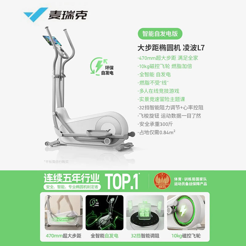 麦瑞克MERACH 椭圆机MR-E27凌波L7系列 白色自发电版MR-E27W1-HW 家用健身房专业大步距 智能小型太空漫步仪静音科学大步幅 不伤膝盖 MR-E27凌波L7系列椭圆机MR-E27W1-HW