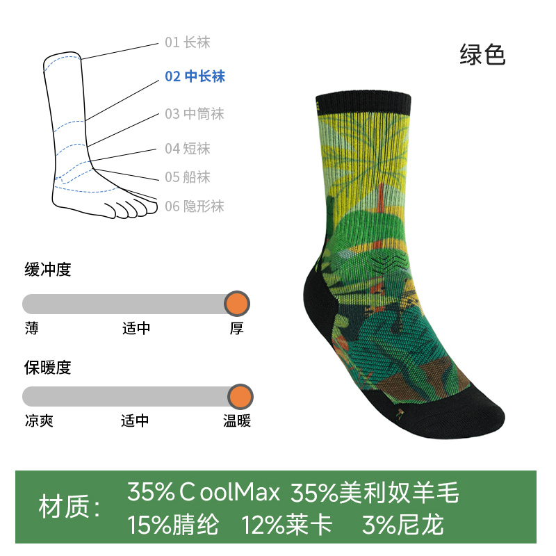 AONIJIE奥尼捷 美利奴羊毛袜 户外登山徒步跑步袜 加厚减震长筒越野运动袜 E4847 绿色吸湿透气 柔软亲肤
