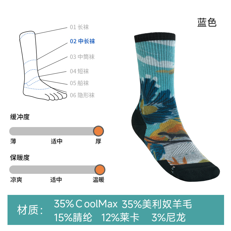 AONIJIE奥尼捷 美利奴羊毛袜 户外登山徒步跑步袜 加厚减震长筒越野运动袜 E4847 蓝色吸湿透气 柔软亲肤