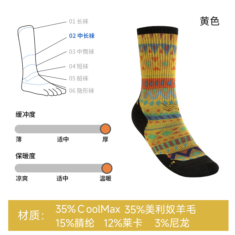 AONIJIE奥尼捷 美利奴羊毛袜 户外登山徒步跑步袜 加厚减震长筒越野运动袜 E4847 黄色吸湿透气 柔软亲肤