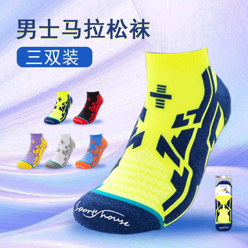 Sports House运动之家 马拉松袜 男士专业跑步袜 短筒夏季吸汗防臭袜 毛巾底压缩运动袜 SH1029 五色可选 三双装3D仿踝后跟 分离式加厚防滑纹路