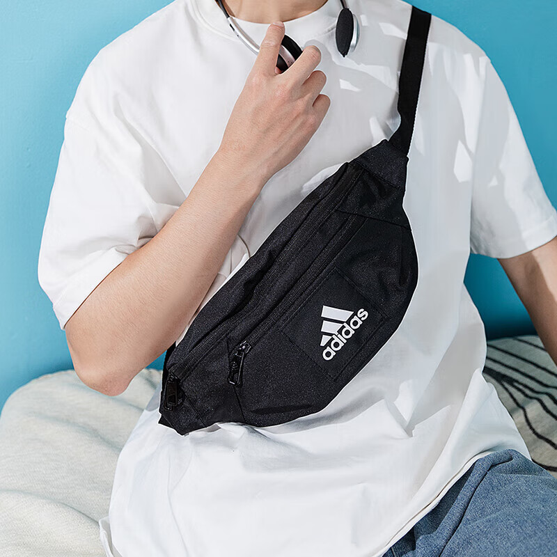 Adidas阿迪达斯 腰包 夏季新款单肩包 跑步包 斜挎包 运动包 情侣胸包 IT2047 黑色可肩背 可斜挎胸前 方便收纳随身物品
