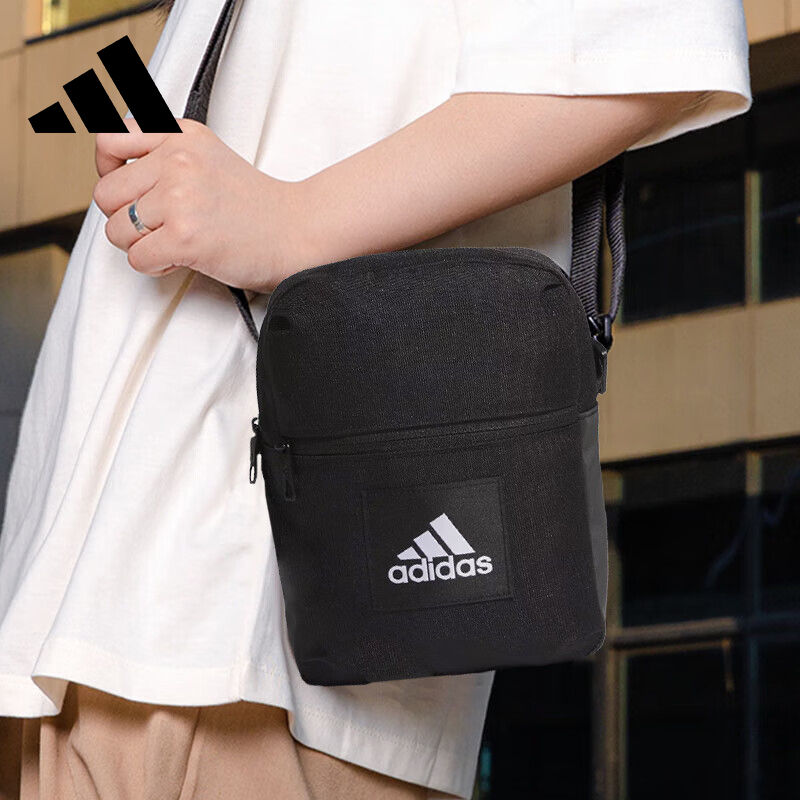 Adidas阿迪达斯 运动斜挎包 单肩包 多功能小包 新款情侣包 男女同款休闲背包 IT2048 黑色优质材料 肩带可调节 斜挎单肩皆适宜