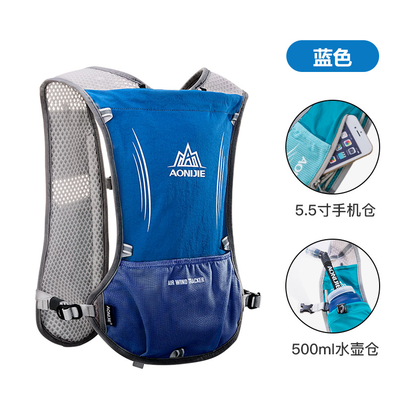 AONIJIE奥尼捷 越野跑背包 专业跑步背包 男女户外竞技跑山 登山装备水袋包 C9116-5L蓝色轻薄透气 助力越野