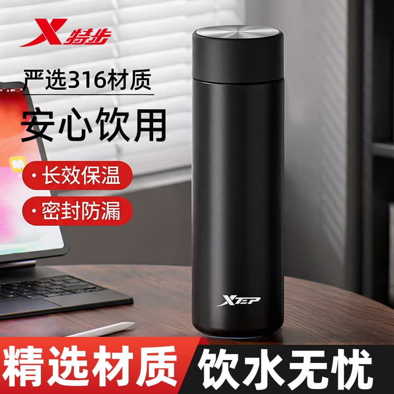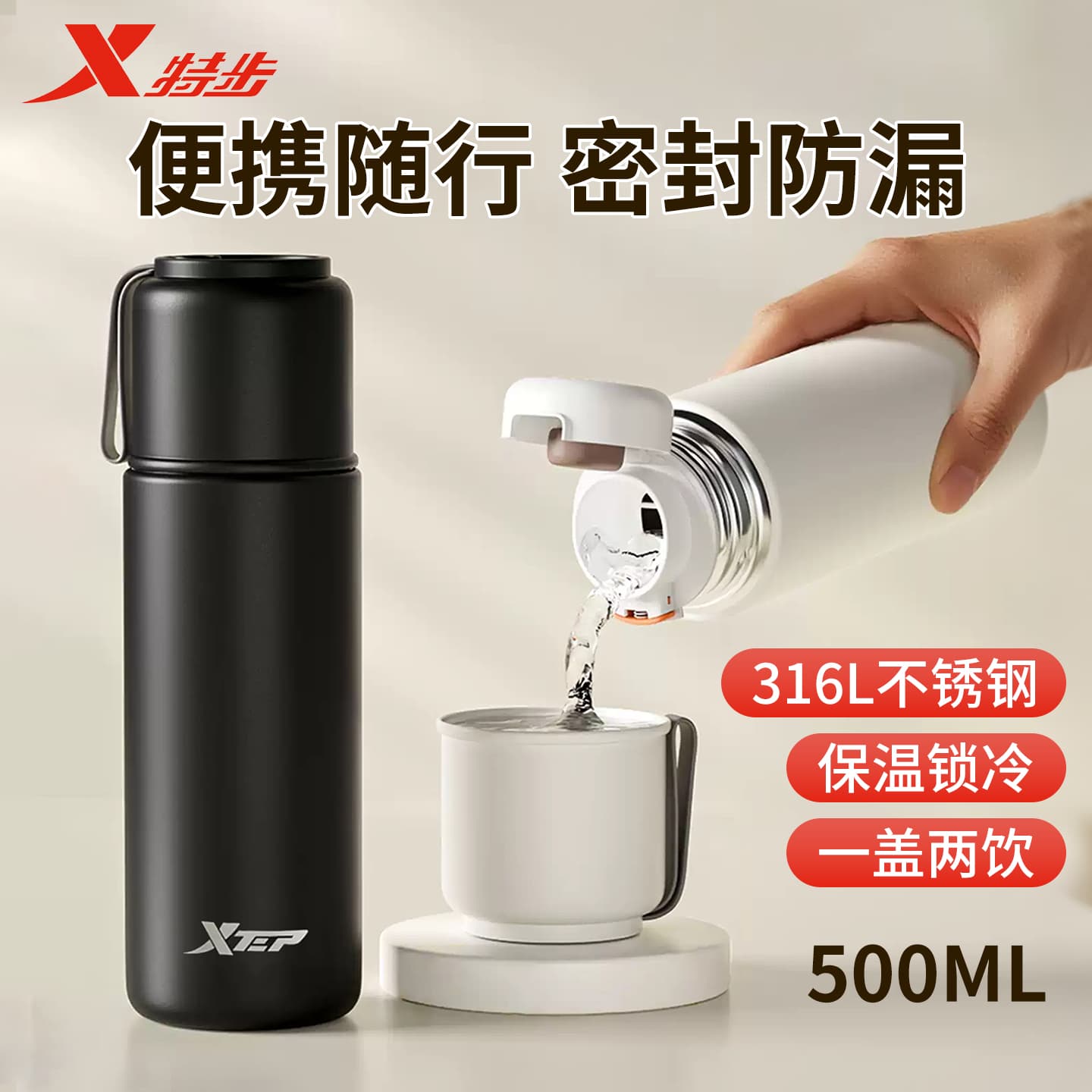 XTEP特步 运动水杯 大容量保温杯 办公室户外便携手提不锈钢水壶 500ML ABA369 双色可选SUS316不锈钢 保温保冰 持久锁温