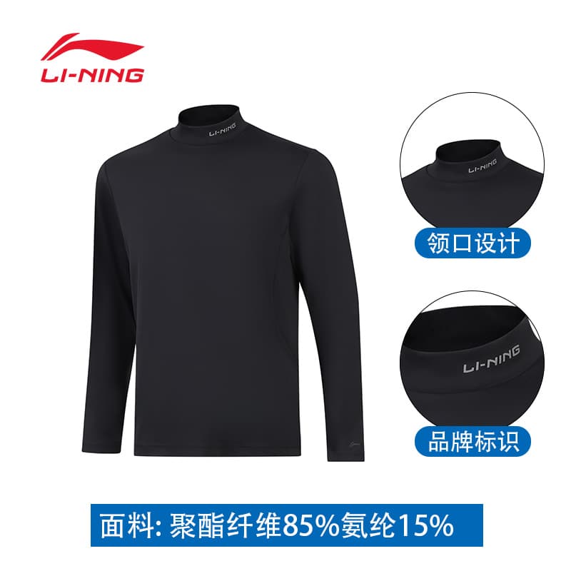 LINING李宁 男 长袖T恤 舒适潮流休闲套头衫 卫衣T恤 ATLV349-1 黑色亲肤透气 轻薄舒适