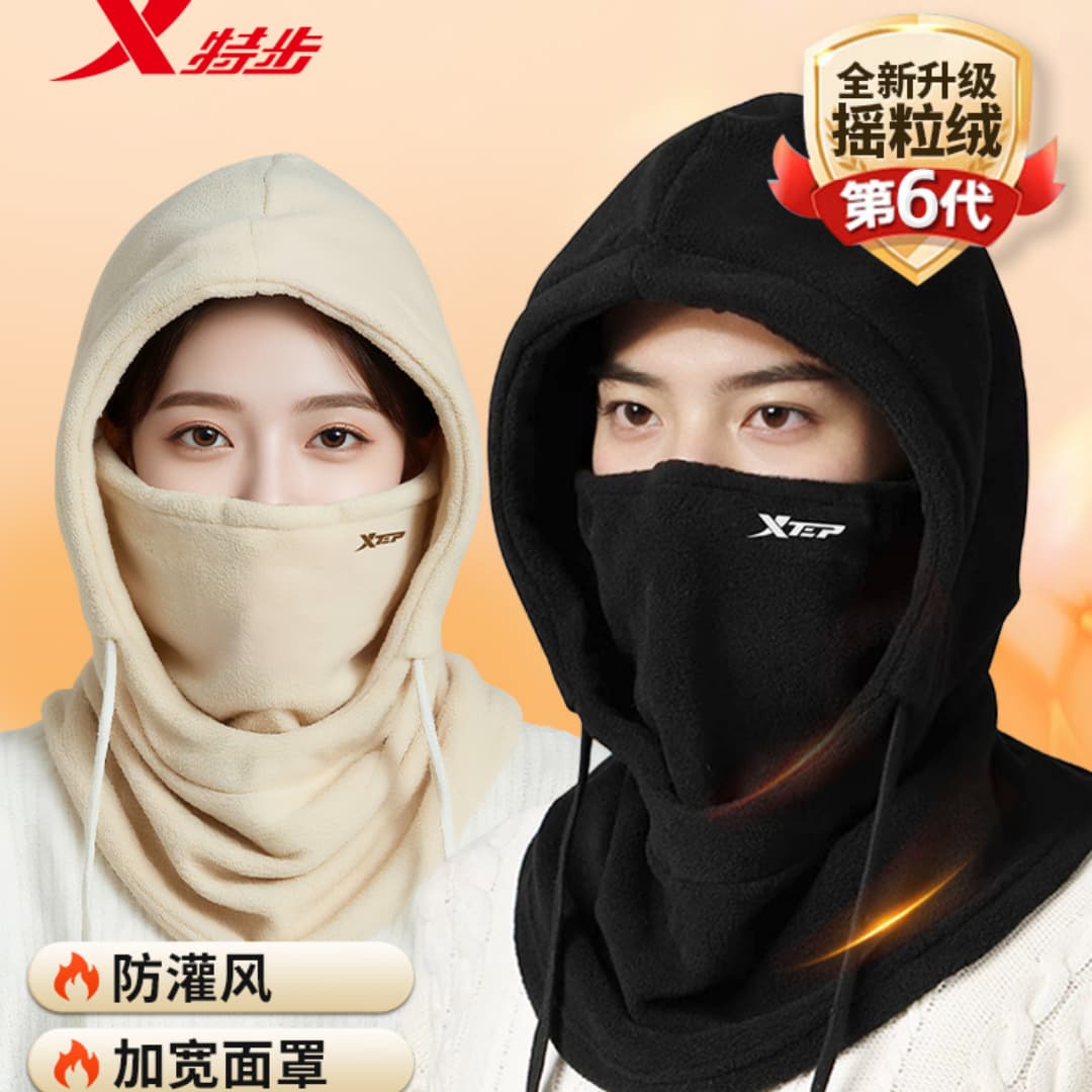 XTEP特步 户外多功能面罩 骑行帽子防风面罩 围脖一体防寒护耳护颈保暖头套 ABA275双面摇粒绒 防风御寒 锁温保暖