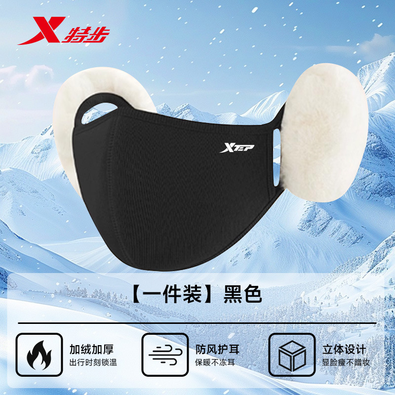 XTEP特步 护耳面罩 骑行防寒面罩 冬季保暖全脸防风遮脸口罩 ABA269 双色可选柔软亲肤 毛绒护耳