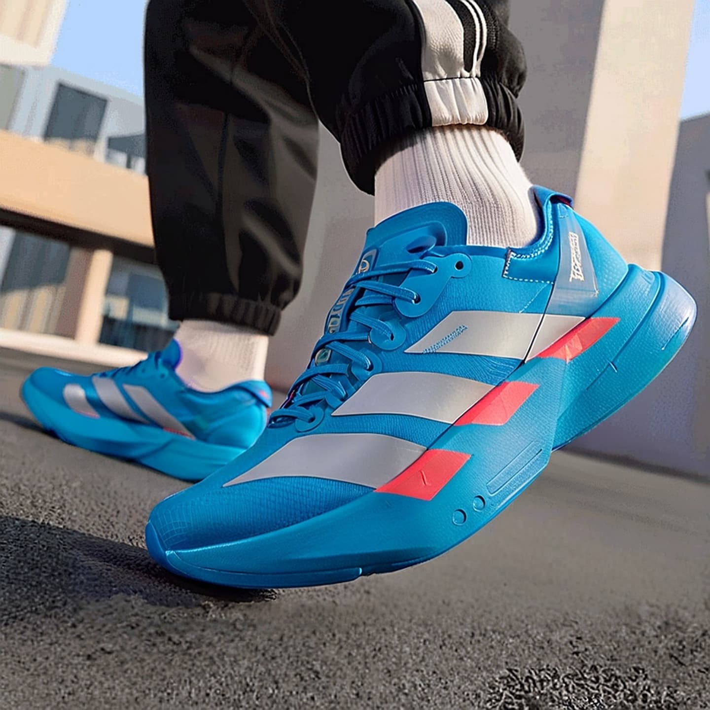 ADIDAS阿迪达斯 女 竞速跑鞋 ADIOS PRO 4超轻碳柱马拉松跑鞋 女子缓震耐磨训练跑步鞋 JR4797 太阳能蓝/金属银/亮红色超级轻量 柔弹包裹