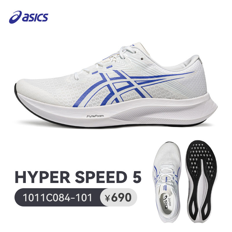 ASICS亚瑟士 男 竞速跑鞋 HYPER SPEED 5轻量回弹透气运动鞋 1011C084-101 白色/蓝色新春开练超级秒杀,原价519元,现仅需499元!