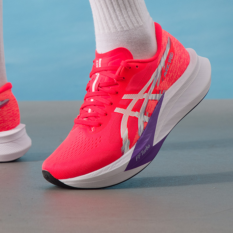 ASICS亚瑟士 女 竞速跑鞋 MAGIC SPEED 4比赛训练碳板跑步鞋 回弹轻量运动鞋 1012B676-600 红色/白色轻量回弹 碳板助力