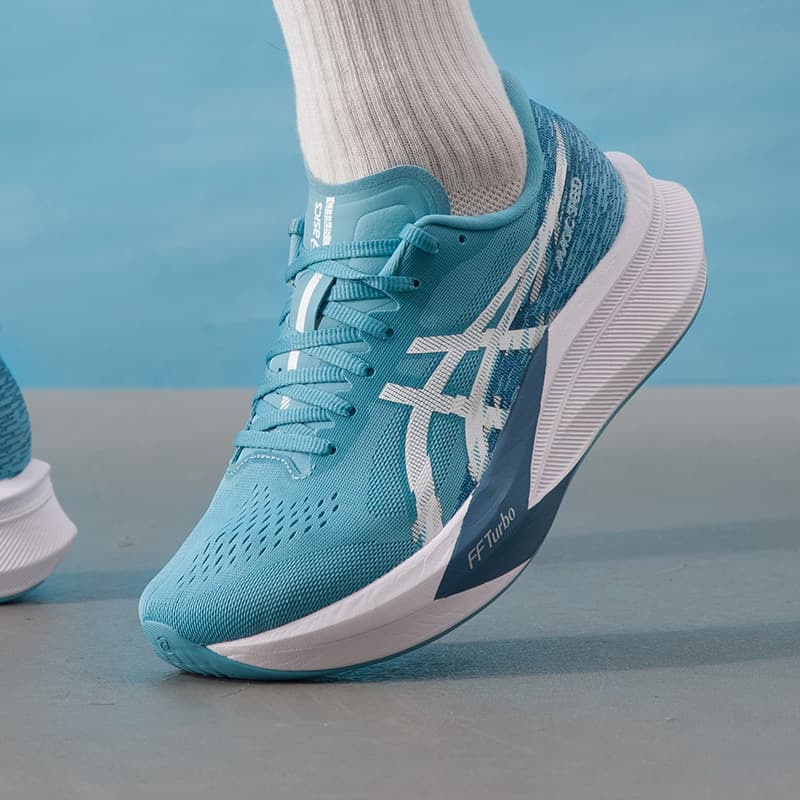 ASICS亚瑟士 男 竞速跑鞋 MAGIC SPEED 4比赛训练碳板跑步鞋 回弹轻量运动鞋 1011B875-402 蓝色/白色轻量回弹 碳板助力