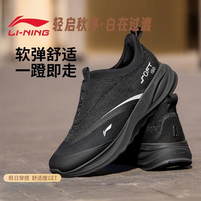 LI-NING李宁 男款休闲鞋 SOFT GO 2春秋新款跑步鞋男 潮流一脚蹬休闲鞋男款运动鞋 AGLV005-1 黑色软弹舒适 一蹬即走