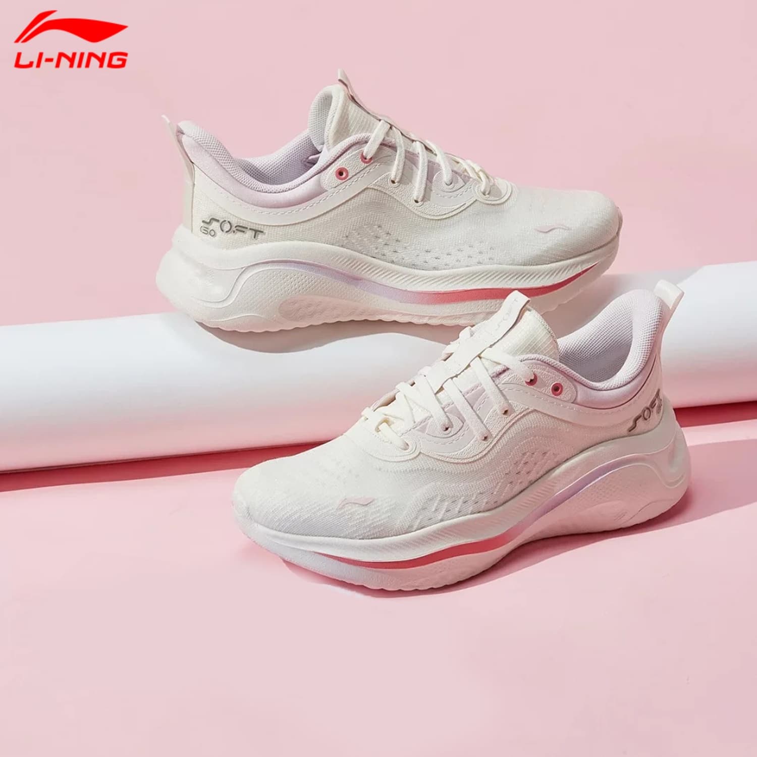 LINING李宁 女 休闲鞋 SOFT GO 2秋季新款跑步鞋 透气回弹柔软舒适潮流运动鞋 AGLV040-2 乳白色软弹舒适 一蹬即走