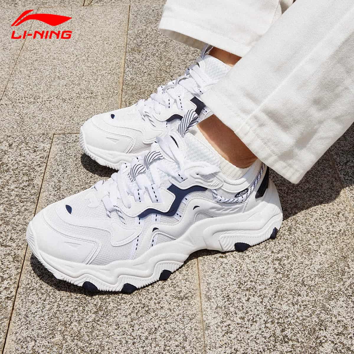 角标 LINING李宁 男 休闲鞋 猫爪运动鞋 2025新款百搭舒适回弹耐磨时尚增高老爹鞋 AGCV399-1 标准白复古廓形 百搭时尚