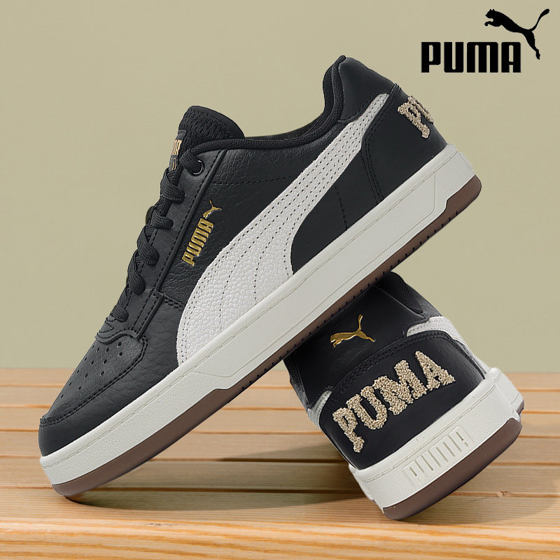 角标 PUMA彪马 低帮板鞋 2025冬季新款运动鞋 男女同款复古休闲鞋帮 395082-04 黑色-暖白-金色复古颜值 舒适实穿