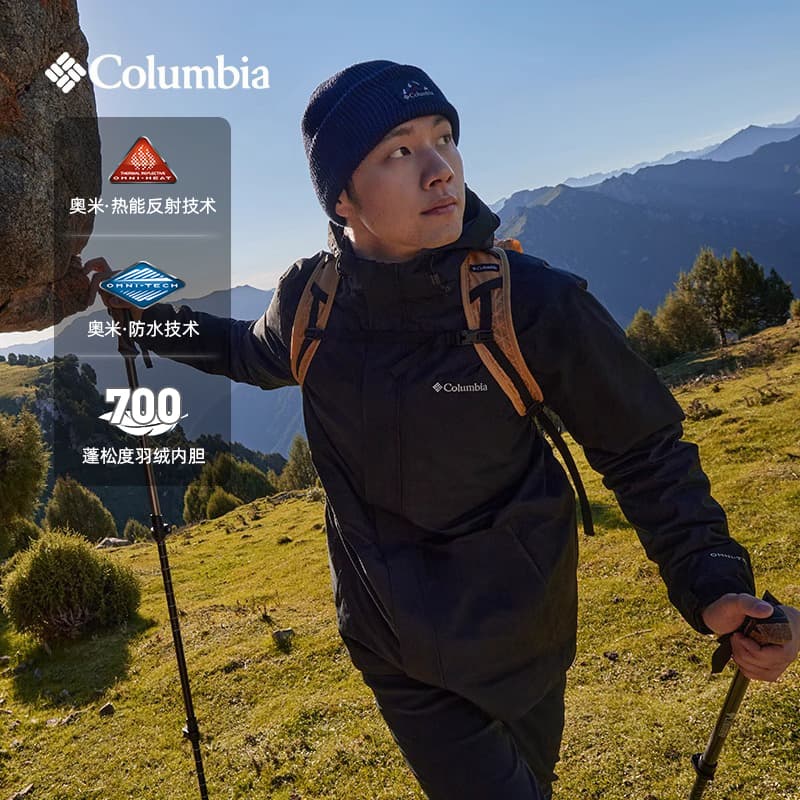 Columbia哥伦比亚 男 三合一冲锋衣 热能保暖防水冲锋衣 羽绒内胆 XE5418010 黑色保暖 轻盈 舒适
