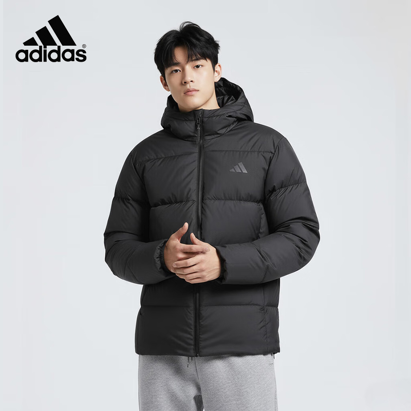 adidas阿迪达斯 男款 棉羽 羽绒服 25秋冬运动休闲保暖时尚连帽长袖羽绒服 KC2478黑色新春开练超级秒杀,原价879元,现仅需799元!
