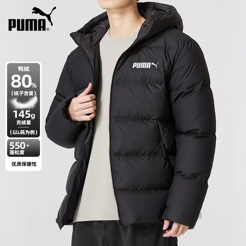 PUMA彪马 男 羽绒服 短款运动羽绒服 冬季鸭绒外套 692811-01 黑色 70%绒子含量 拒寒保暖