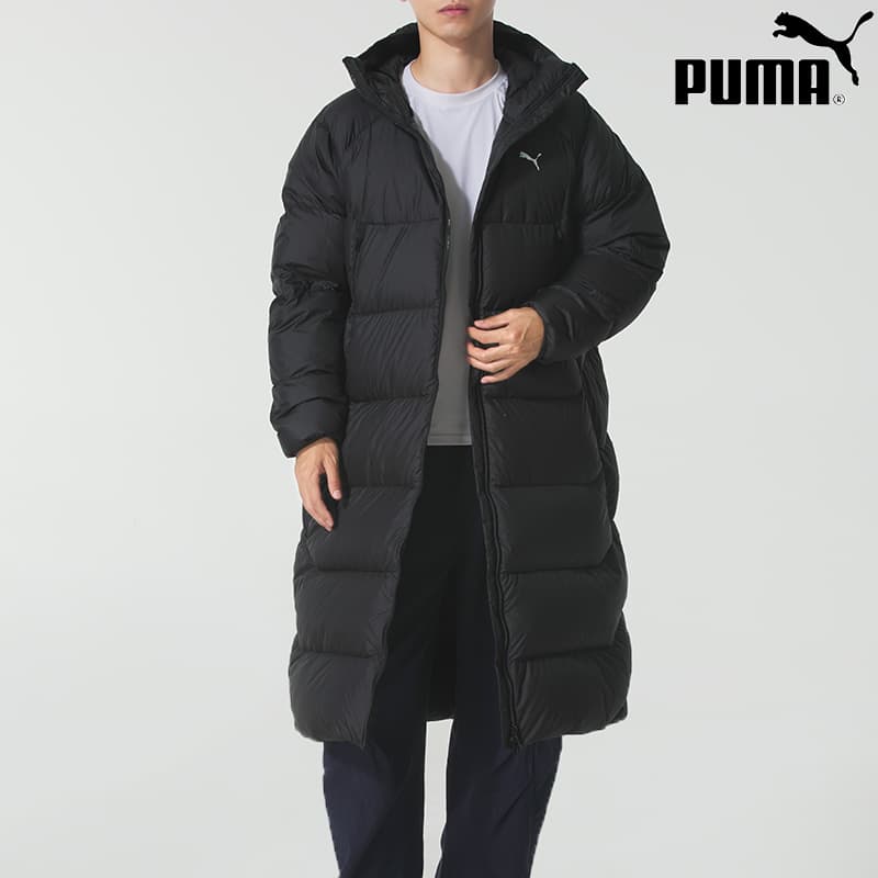 PUMA彪马 男 羽绒服 长款运动羽绒服 冬季鸭绒外套 691080-01 黑色90%绒子含量 防风拒水