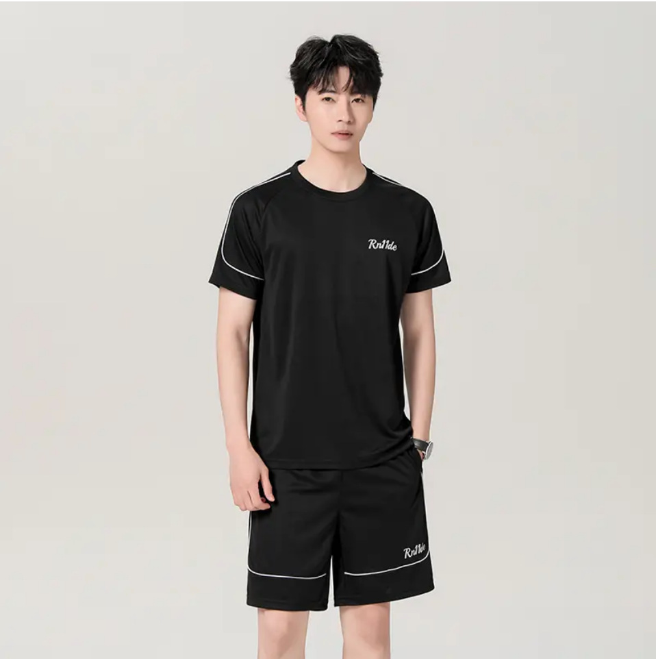 玛尔斯 男女同款款运动速干套装 2403 黑色 宽松运动服短袖短裤 大码跑步运动套装情侣轻量化面料 透气舒适 运动速干套装 2403 黑色