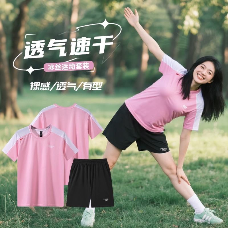 玛尔斯 运动套装跑步服 男女同款 8808 粉色 男女健身衣服 骑行训练晨跑服 春夏冰丝速干T恤透气速干 零感面料 运动套装跑步服 男女同款 8808 粉色