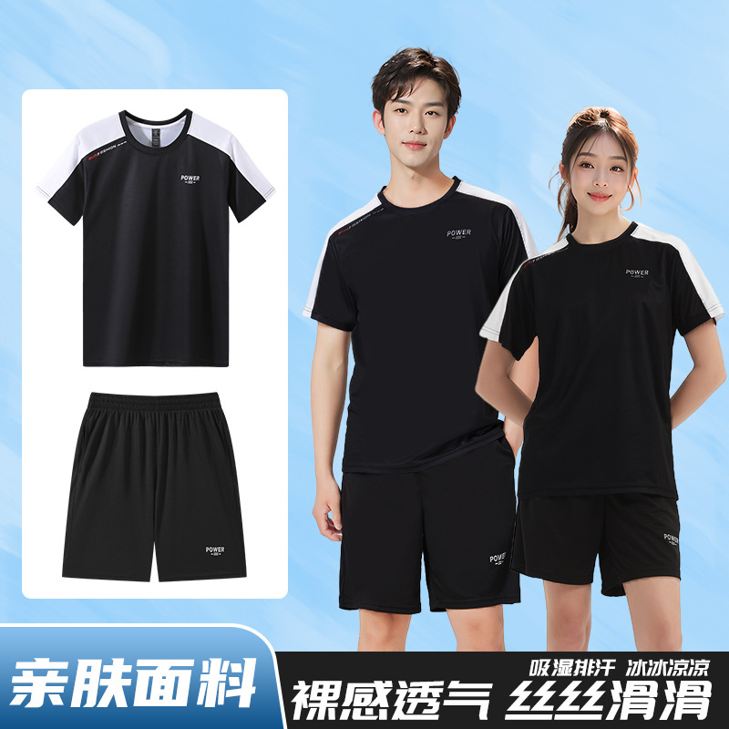 玛尔斯 运动套装跑步服 男女同款 8808 黑色 男女健身衣服 骑行训练晨跑服 春夏冰丝速干T恤透气速干 零感面料 运动套装跑步服 男女同款 8808 黑色