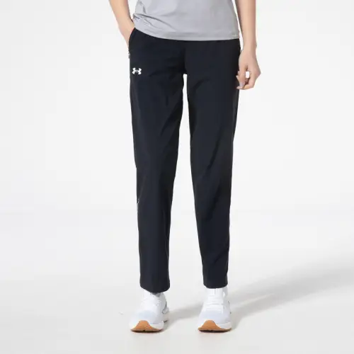 角标 Under Armour安德玛 女梭织长裤 高腰运动休闲裤 跑步长裤 户外运动裤 健身束脚裤 22500710-001 黑色双侧口袋使用 面料柔软透气 收口裤脚利索剪裁