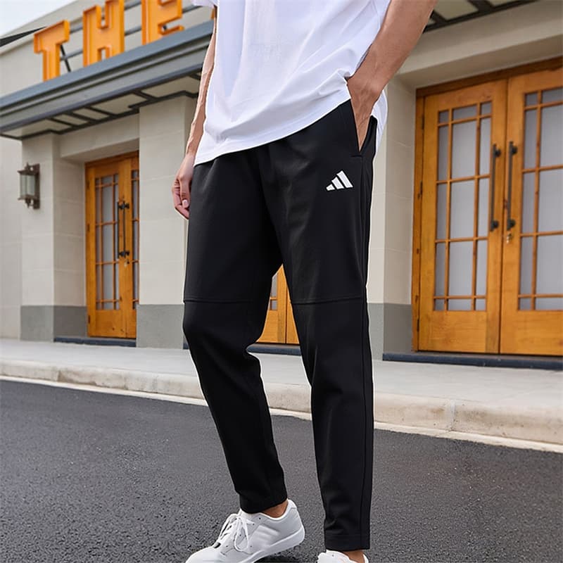 角标 ADIDAS阿迪达斯 男 梭织长裤 2025秋季新款男士运动裤直筒裤休闲裤 KC2877 黑色速干透气 简约百搭