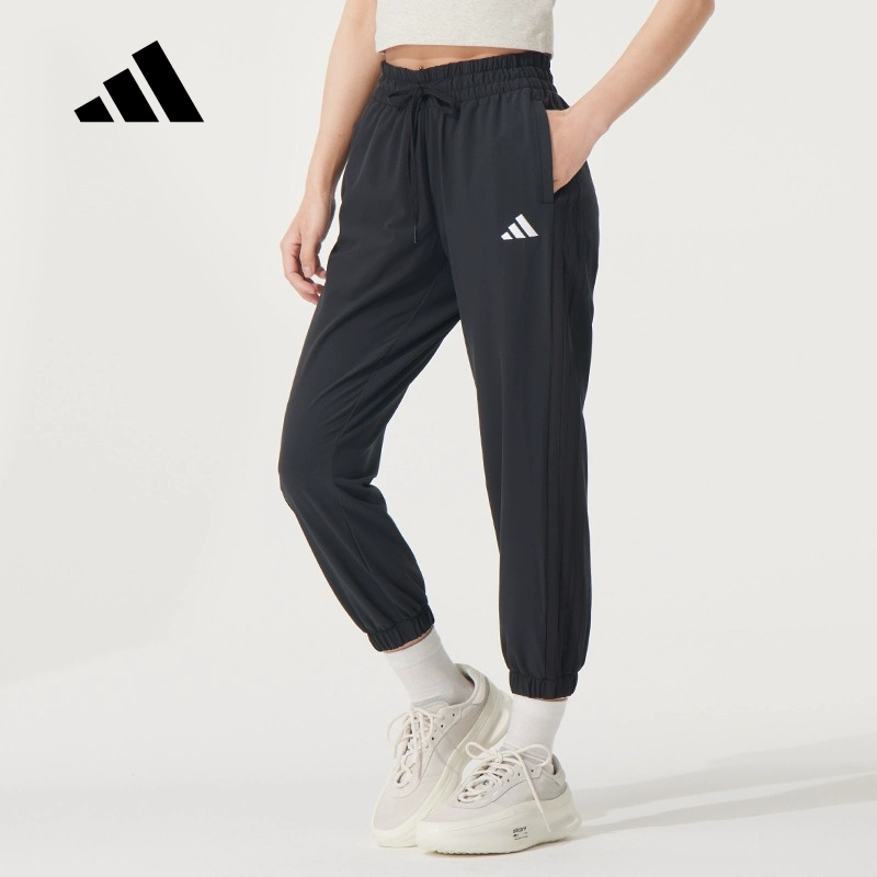 角标 ADIDAS阿迪达斯 女 梭织长裤 2025秋季款束脚裤运动裤休闲裤 宽松健身跑步长裤 JZ2174 黑色束脚显瘦 速干透气