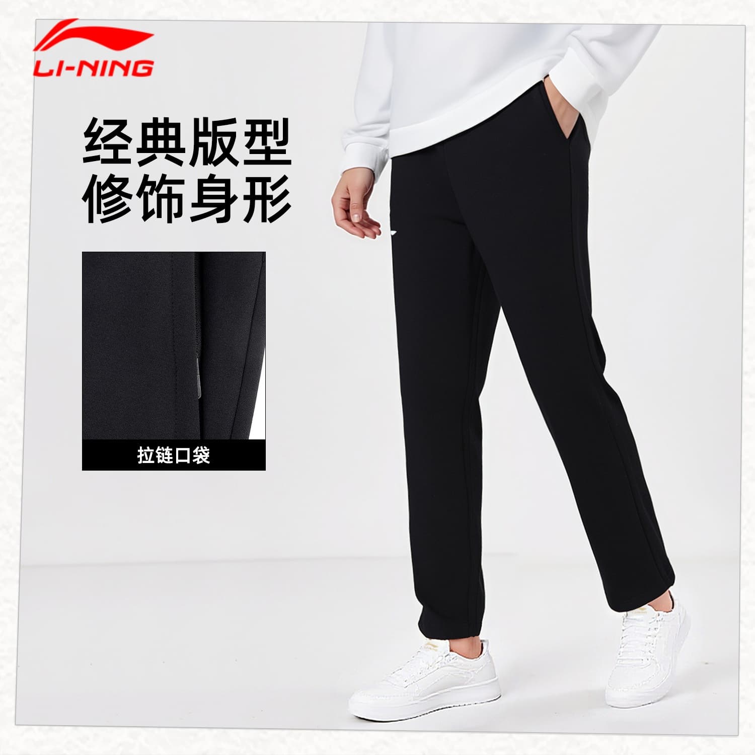 角标 LINING李宁 男 直筒卫裤 2025秋冬新款舒适运动裤 宽松直筒裤休闲长裤 AKLV197-1 黑色棉感面料 触感柔软
