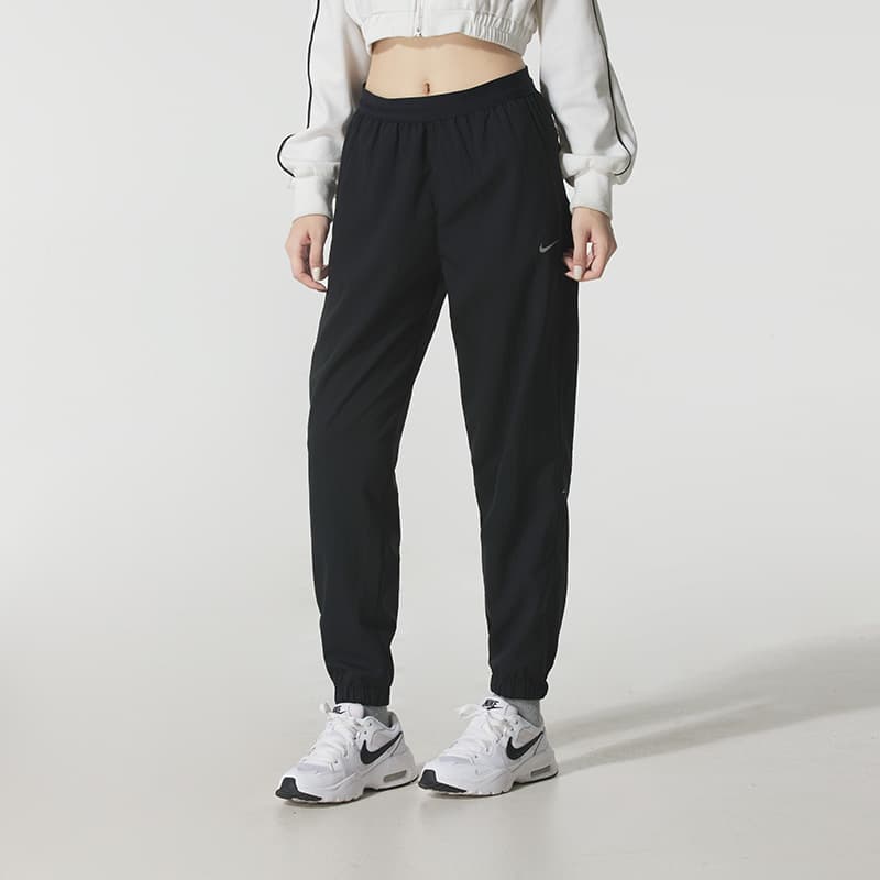 NIKE耐克 女 梭织长裤 简约束脚休闲裤 透气户外运动裤 时尚梭织长裤 HV5767-010 黑/银速干透气 束脚百搭