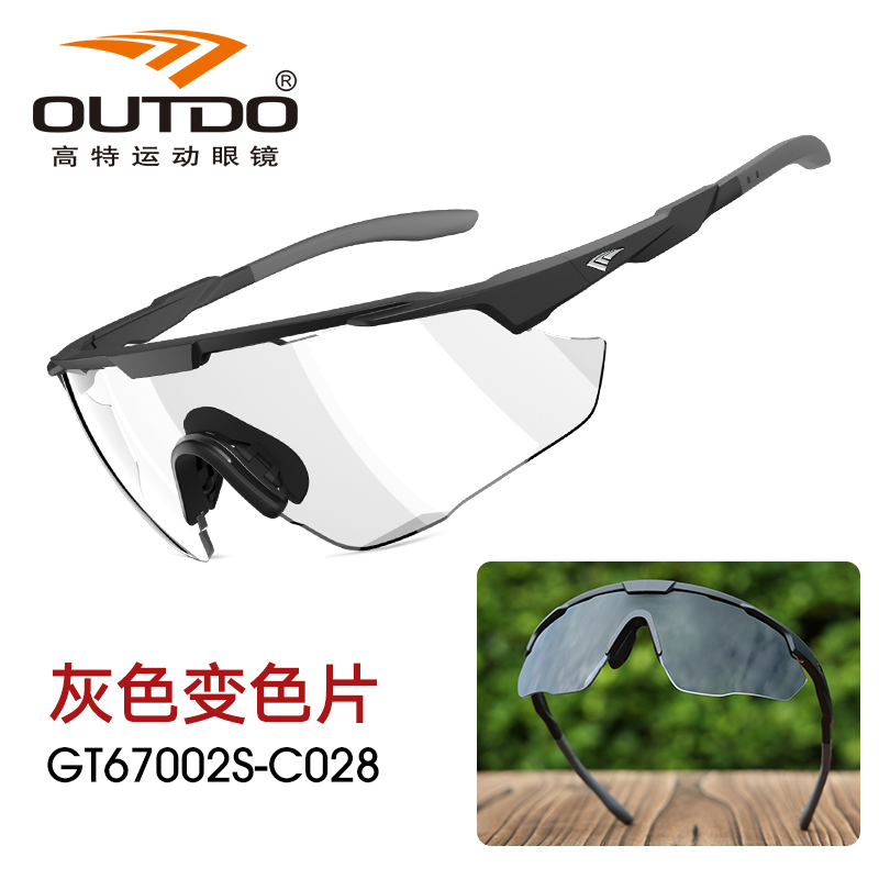 Outdo高特 运动眼镜 跑步运动护目镜 马拉松户外登山变色眼镜 专业自行车男女防风日夜两用 GT67002S 双色可选透明变色 一体片大视野 全天候使用
