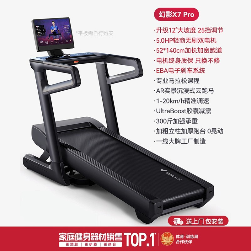 MERACH 麦瑞克 幻影X7Pro跑步机 升级25档坡度调节 家用高端静音爬坡 健身房器材 MR-T01H4 黑色升级25档坡度调节 AI Mia私教陪练 AR实景竞技游戏