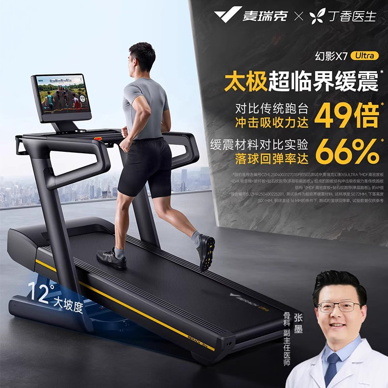 MERACH 麦瑞克 幻影X7 Ultra版 跑步机 家用爬坡运动健身房器材 减震护膝静音健身器材 MR-T01H5 黑色太极超临界缓震 3大权威认证 真护膝